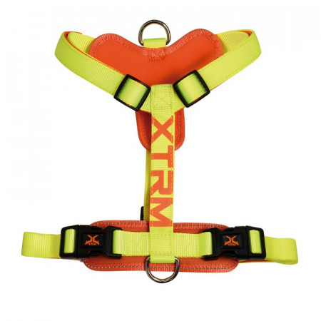 Arnés de Perro Azul X-TRM Cronos Neón Flash Nayeco son arneses para perros fabricado en neopreno de colores llamativos, muy confortable y seguro para su mascota. Dispone de dos posibilidades de sujetar a su mascota, una argolla en el pecho para una mayor sujección, a modo de entrenamiento o adiestramiento y otra argolla en la parte superiior del lomo para un uso diario, en su paseo normal.