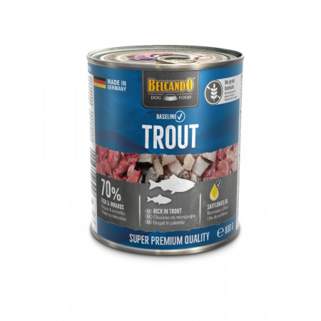 Trucha (26 %); caldo de carne (28,8 %); hígado; estómago; corazón; riñones; pulmón; cáscaras de huevo secas; minerales; aceite de cardo (0,2 %)