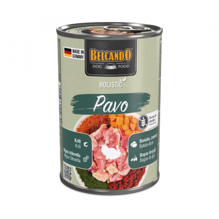 Carne y mollejas de pavo (35 %); caldo de carne de pavo y pollo (37,5 %); hígado y corazón de pollo (18 %); batata o boniato (3 %); zooplancton marino (krill)*¹ (2,4 %); guisantes (2 %); minerales (1,1 %); bayas de goji*² (0,5 %); cáscaras de huevo*² (0,3 %); algas*² (Chlorella vulgaris) (0,2 %) *¹molido *²secado