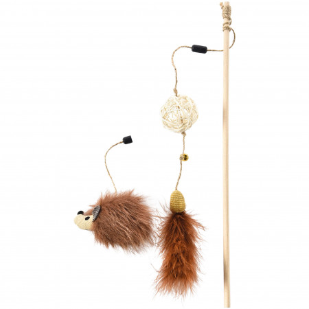 La caña de juguete con recambio de Premier CAT es un juguete interactivo diseñado para fortalecer el vínculo entre tú y tu gato mientras juegan juntos. Con una longitud de 40 cm para la caña y una cuerda de 50 cm, te permite jugar sin preocuparte por los arañazos, ofreciendo una experiencia de juego segura y divertida para ambos.