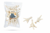 Los snacks dentales además tienen el añadido de velar por la limpieza y el bienestar bucal, debido a que mientras mastican les irán limpiando los dientes y encías. Les prevendrán la placa bacteriana, eliminarán el sarro sin darse cuenta, y les dejarán con un aliento fresco y sin mal olor.