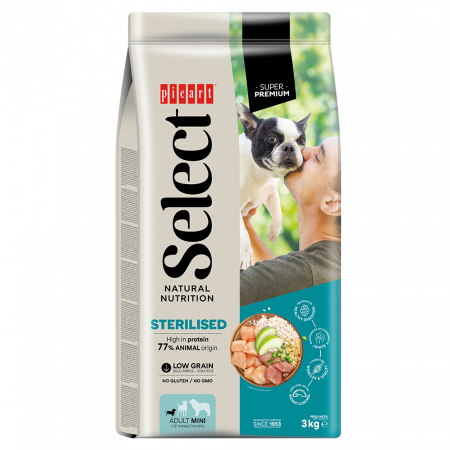 Picart Select MINI LIGHT está formulado para satisfacer todas las necesidades de tu perro y promover una condición física y salud óptimas. Es un producto bajo en grasas para combatir el aumento de peso. Contiene L-Carnitina que ayuda a quemar grasas y generar energía, así como fibras saciantes para regular el apetito. Es ideal para perros esterilizados.